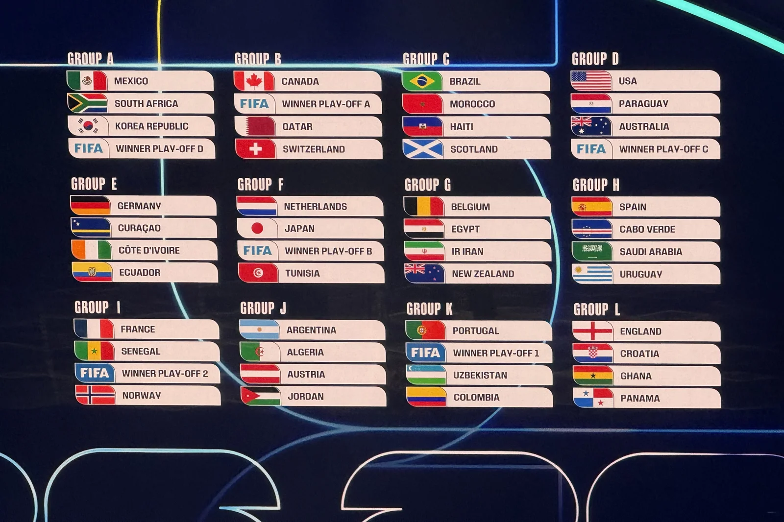 Imagem dos grupos da Copa do Mundo 2026 após sorteio da Fifa - NIYI FOTE/ESTADÃO CONTEÚDO