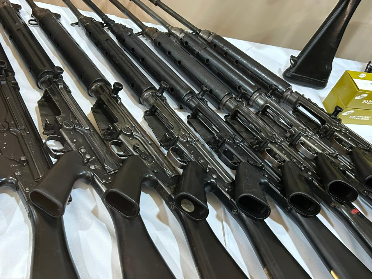 “São fuzis específicos para um tipo de combate. Eu já comprei mais de 300 fuzis leves, usados no dia a dia. Esses agora são mais pesados e vão ficar nas divisas. Eles exigem licença do Exército, porque são voltados para o enfrentamento de um crime específico e utilizam munição de maior impacto”, afirmou.