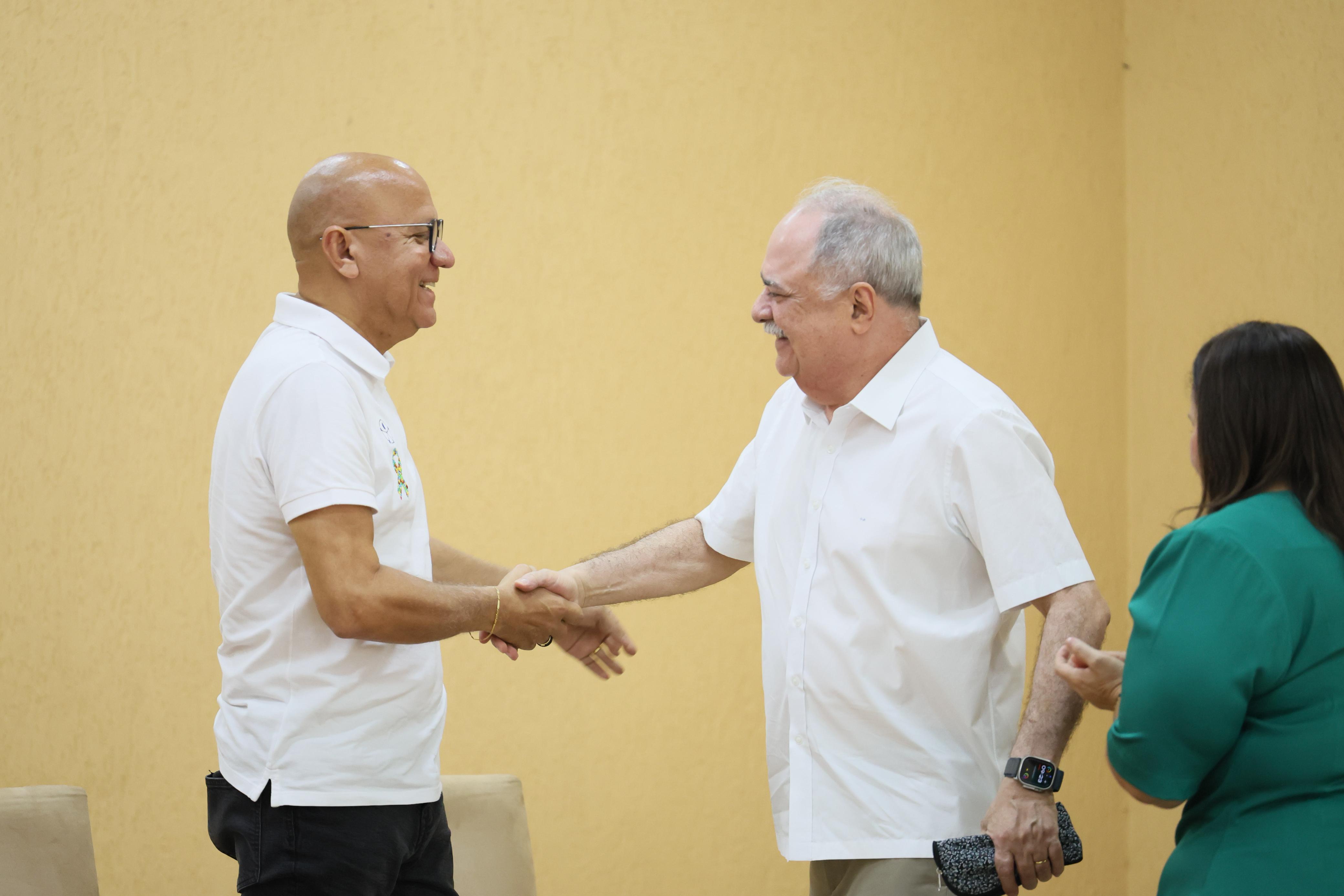 O deputado Franzé Silva e o presidente estadual do PCdoB, José Rufino Carvalho, durante anúncio de apoio à pré-candidatura em Teresina. Foto: Ascom